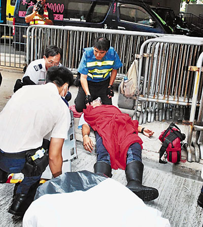 隸屬港島交通部的高級警員,昨午12時許,在中環執行指揮交通任務後,駕駛電單車擬返回跑馬地警署,事發時沿黃泥涌道快線向跑馬地行駛,途經上址時,冷不防有一個工地,收掣不及插入路牌中央,電單車當場人仰馬翻,警員墮地受傷,路牌亦告翻倒,壓中一名29歲姓陳工人頭部,他頭破血流受傷倒地。