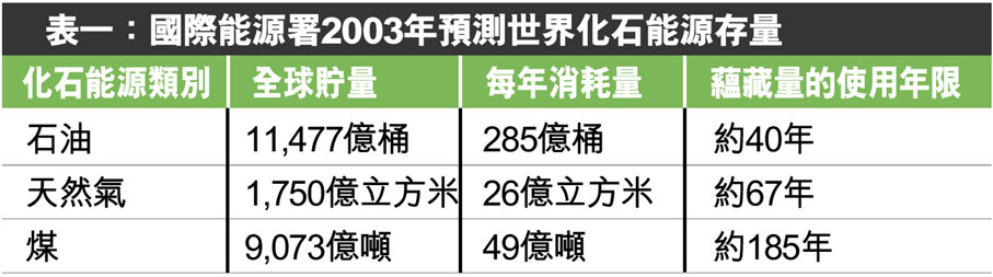 表一:國際能源署2003年預測世界化石能源存量 (圖)