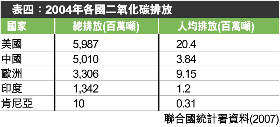 表四:2004年各國二氧化碳排放 (圖)