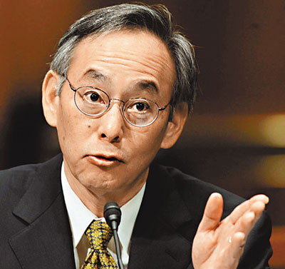 ■美國總統奧巴馬挑選朱棣文(左)為能源部長,加速美國可再生能源的發展,用新技術減少溫室氣體的排放。 新華社