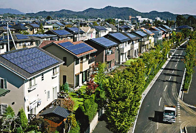 ■日本的住宅房屋天花頂裝上了太陽能設備。 路透社