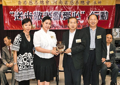 【本報訊】(記者 沈清麗)香港慈善總會、河南省慈善總會昨聯合舉辦「送米敬老獻愛心」行動,中聯辦港島工作部部長高級助理向錦清、河南省慈善總會常務副會長楊德恭、香港慈善總會主席鄭蘇薇、中西區區議員陳財喜、西區警民關係主任范楚芬總督察等出席活動。