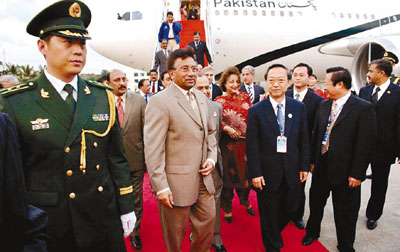 ■接待外賓是外交人員其中一項重要任務。圖為去年巴基斯坦總統穆沙拉夫訪華。 資料圖片