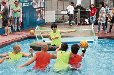 【本報訊】無線劇集《ID精英》一班演員郭晉安、蒙嘉慧、朱慧敏、梁靖琪等昨日到佐敦為新劇宣傳,眾演員在泳池分兩組進行水球比賽,然而安仔及蒙嘉慧兩位主角卻未有落水,梁靖琪卻在月事來潮下冒險落場守龍門,認真搏命,結果梁靖琪、陳志健率領的組別以3比2擊敗鄧健泓、姚嘉妮等人組合。