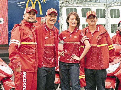 【本報訊】(記者 李思穎)容祖兒、陳奕迅、林海峰、葛民輝昨日穿上外送速遞員制服為某快餐店宣傳,稍後他們會親身體驗送外賣滋味,向來率性的容祖兒坦言最想到偶像劉青雲的家送外賣,至於林海峰和葛民輝當年做電台節目時,曾經親自往郭富城、張曼玉、張學友的家送禮物,都算「巴閉」。