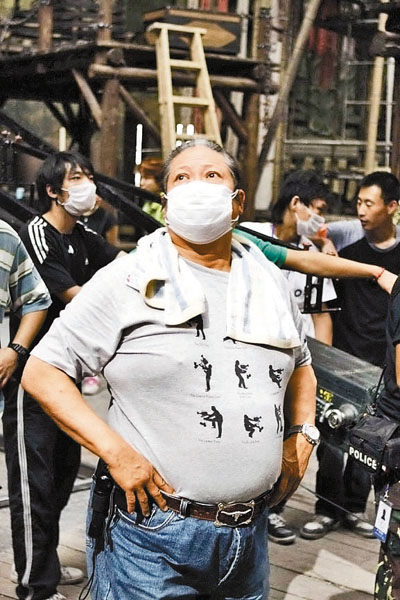 【本報訊】(記者 植植)徐克執導、洪金寶任動作導演的《狄仁傑》昨日開放探班,當天巨大的攝影棚內,高達五層樓的通天浮屠部分建築得以全方位呈現。大哥洪金寶就在這裡執導了一場驚險的動作戲。進入攝影棚,首先看到的是環繞整個場景的巨大綠幕,從場景一角的入口走進,就會立刻看到一座貼滿神秘文字符咒的「通心柱」聳立在正中間,圓柱周圍是幾層樓高的環形走廊,處處可見機關。洪金寶正在拍攝的一場戲是幾個佩刀士兵在走廊奔跑拉下機關,將溶漿注入到通心柱內。