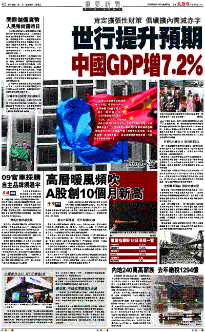 ¥@¦æ³ø§i«ü¥X¡A¾¨ºÞ¤¤°ê¸gÀÙÄ~Äò·P¨üþÓ¥þ²y¦M¾÷ªº½ÄÀ»¡A¦ý¡u·¥¨ãÂX±i©Êªº°]¬F©M³f¹ô¬Fµ¦¨Ï¸gÀ٨̫O«ùþÓ¥iÆ[ªº¼Wªø³t«×¡v¡C³ø§iÁÙ¹w´ú¡A¤¤°êGDP¼W³t2010¦~±N·|´£¤É¦Ü7.7%¡A¦ý´£¤É´T«×¤p©ó¨ä¥L°ê®a¡C¦Ó¦b¤µ¦~7.2%ªº¼Wªø²v¤¤¡A¦ôp¦³6ӦʤÀÂIªº¼Wªø¨Ó¦Û¬F©²¼vÅTªº¤ä¥X¡A¥H¤Îµ|¦¬°§C±a¨Óªº¨ë¿E¡C