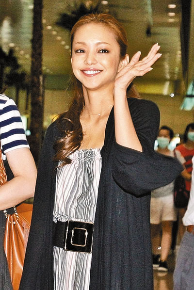 即將在台北舉行個唱的日本天后安室奈美惠,昨日率領工作人員抵台,認真巴閉。大批歌迷早在機場接偶像機,大會安排多位保安維持秩序。略施脂粉的安室親切地與歌迷揮手致意(見圖),非常親民。期間發生了一段小插曲,當安室在通過發燒篩檢站時,她的保鑣因體溫過高被攔下量耳溫,她和其他工作人員都笑得不可開交。 ■文︰若谷/圖︰中央社