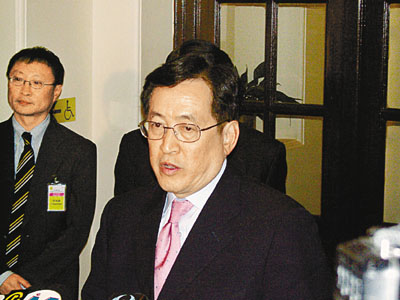 ■周一嶽表示,最快11至12月便有甲流疫苗到港,可供200萬名高危人士免費接種。左為曾浩輝。 本報記者李見安 攝