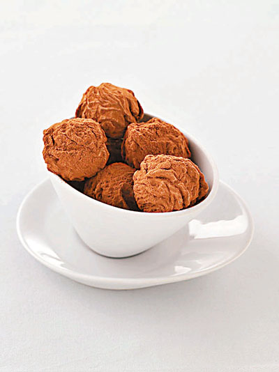 5. 將可可粉沾上已凝固之朱古力即成。(食譜由加州葡萄乾管理委員會提供)