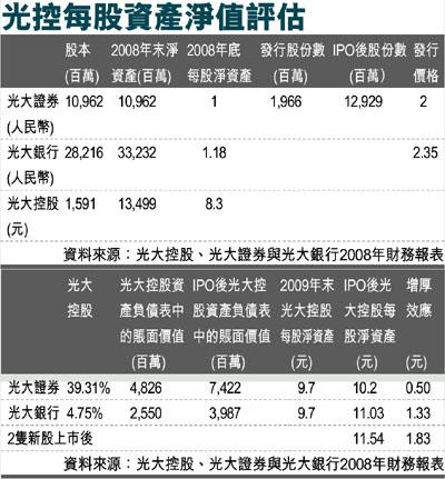 ¡@¦b¨â°¦·sªÑ¤WÉ]«á¡A¥»¦æ»{¬°¤¤°ê¥ú¤j±±ªÑ2009¦~¨CªÑ±b±È±N¤W¤É19%¡C¤¤°ê¥ú¤j±±ªÑªÑ»ù©ó¥»¦æ¦b3¤ë27¤é±ÀÂË«á¤w¤É¹O58%¡C¥Ø«e°ê¤º10¤jÃÒ¨é¦æ¤¤¡A®ü³qÃÒ¨é(600837CH)¤Î¤¤«HÃÒ¨é(600030.CH)¤w¸g¤WÉ]¡A¨â¶¡¤½¥q¥Ø«eªºªÑ»ù¤À§O¬Û·í©ó2009¦~¥«±b²vªº3.16¿»P3.00¿¡C¬Û¹ï®ü³qÃÒ¨é¤Î¤¤«HÃÒ¨é§éÅý25%¡A¥»¦æ±N¤¤°ê¥ú¤j±±ªÑªº¥Ø¼Ð»ù¤W½Õ¦Ü22.0¤¸(²{»ù18.50¤¸)¡A¬Û·í©ó2009¦~¥«±b²v¬°2.25¿¡C¥»¦æ«ØÄ³§ë¸êªÌ¶R¤J¥ú¤j±±ªÑ¡A¨ÃÀR«Ý¥ú¤jÃÒ¨é»P¥ú¤j»È¦æ·sªÑ¤WÉ]¤é´Áªº½T©w¡C