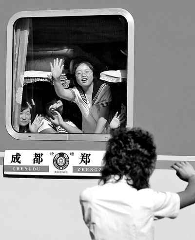 6月30日,在山西省長治市長安慈善學校過渡復課的600多名漩口中學學生結束異地求學生涯,踏上返回家鄉汶川的旅程。 新華社