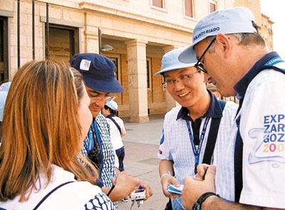 ■外國志願者向上海志願者諮詢,希望報名加入上海世博會志願者隊伍。