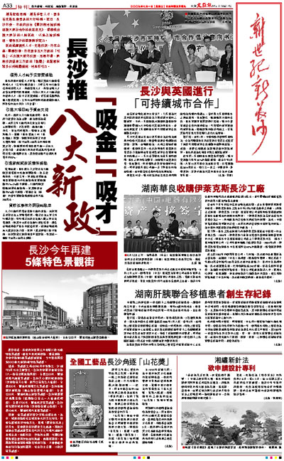 此外,還將大力引進先進技術。長沙將以優勢企業為主體、產業園區為載體,未來三年引進和消化吸收百項以上關鍵技術、共性技術。通過引進、消化、吸收和再創新,增強自主創新能力,推動「長沙製造」向「長沙創造」轉變。對經市政府認定的重大創新項目,給予50萬-100萬元的項目經費支持;對個別特殊項目還可進一步加大支持力度。並鼓勵以高新技術成果和專利技術投資入股創辦企業,其作價金額可佔到註冊資本的70%。