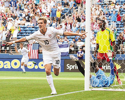 ■由一支青年軍組成的美國隊4日在西雅圖進行的2009年北中美洲及加勒比地區金盃足球賽B組的首場比賽中,以4:0輕取格林納達隊,踏上了衛冕之路。 美聯社