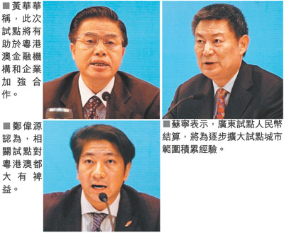 港府駐粵辦主任鄭偉源表示,此次試點是中央一個突破性的決定,對粵港澳都大有裨益,相關企業可降低風險和成本,而在抗擊金融海嘯的背景下,意義尤為重大。