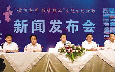 ■王正偉與其他官員向各媒體介紹寧夏貿洽會的細節內容。 本報實習記者張昆 攝