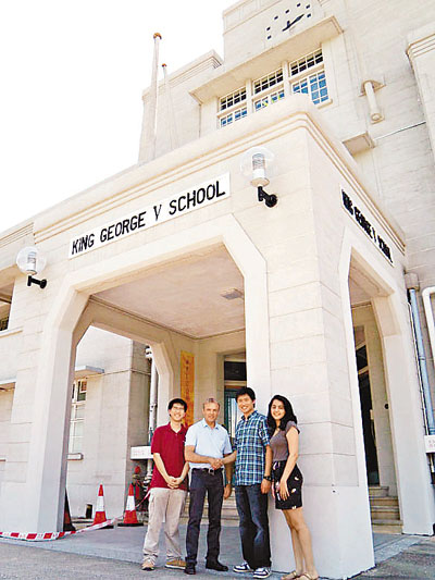 ■張家銘(右二)在IB考試中取得滿分,獲英國華威大學取錄。左一為嚴家瑞、右一為Shivinia Harjani。英基提供圖片