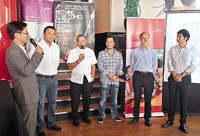 【本報訊】(記者 郭正謙)香港著名車手歐陽若曦及馬清揚昨日聯同新加坡一級方程式大賽主辦單位代表來港進行宣傳活動,向香港市民介紹即將於9月舉行的2009一級方程式SINGTEL新加坡大獎賽,項目總監Justin表示希望可藉這個一年一度的大賽帶動新加坡整體旅遊業。