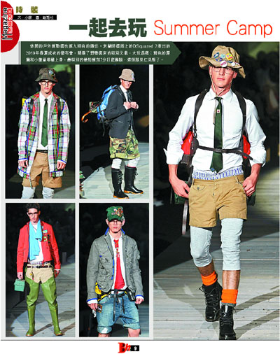 休閒的戶外運動裝也進入時尚的隊伍。米蘭時裝周上的DSquared 2推出的2010年春夏成衣的發布會,精選了野營裝束的特別元素,大玩混搭;鮮色的厚襪和小徽章堆積上身,最特別的是短褲加7分打底裹腿,這個就見仁見智了。