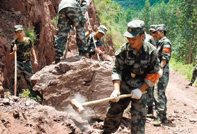 目前,通往葡萄村、三角村、馬游村等有近萬名災民的重災區道路搶修已進入尾聲,交通基本恢復正常,能夠保證運送物資的車輛通往重災區。