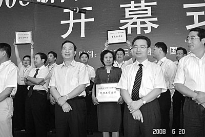 石家莊市榮獲「2008浙商最具投資潛力城市」稱號 ,中為石家莊市工商聯代表領取榮譽證書。 河北省冀浙投資企業聯合會提供