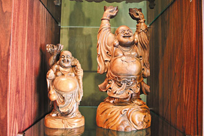 ■想請佛祖回家,這兩個以綠檀木製成的大佛公,是不錯的選擇。