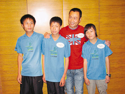 ■黎耀祥給三位來自雲南的小朋友關懷與慰問。