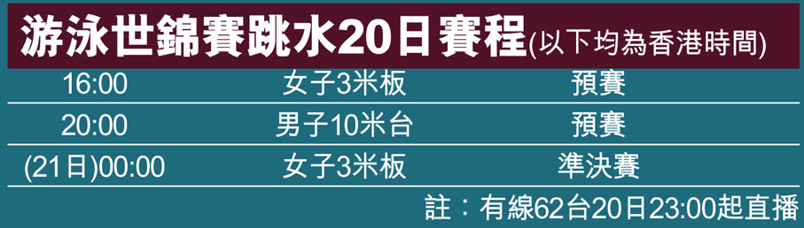 游泳世錦賽跳水20日賽程(以下均為香港時間)