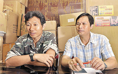 ■周聯僑(右)指出,由於大型基建仍進度緩慢,令不少扎鐵工人嚴重開工不足。 本報記者李志樑 攝