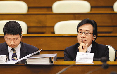 ■梁展文(右)稱,政府在談判中處於劣勢,故才會接納新世界的補地價建議。本報記者李志樑 攝