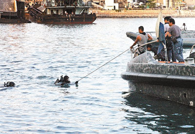 ■失蹤女童王嘉梅遭碎屍案,警方水鬼隊在九龍城馬頭角公眾碼頭海面搜尋遭遇害少女的殘肢。小圖為16歲失蹤女童王嘉梅。 資料圖片