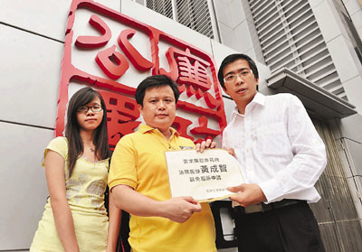 【本報訊】(記者 陳辰)高等法院下周一將審理民主黨立法會議員黃成智,就自己在選舉期間涉嫌虛報為註冊社工一事申請豁免起訴。監察立法會議員誠信關注組到廉政公署請願,要求廉政專員盡快就黃成智懷疑在選舉中作虛假陳述,涉觸犯選舉條例一事深入調查,並阻止高等法院接納黃成智的豁免起訴申請。關注組發言人王文傑表示,他們今日下午會分別到上水、大埔及沙田火車站收集市民簽名,並動員不滿黃成智的市民,於明日下午到高等法院門外,通宵靜坐至周一開審日,要求法院依法否決黃的申請。