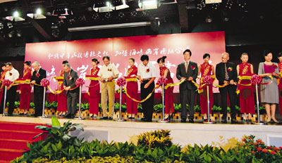■嘉賓為海峽兩岸百名將軍書畫展剪綵。 李望賢 攝
