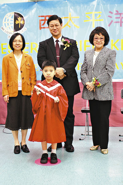 【本報訊】西太平洋幼稚園於早前舉行第32屆畢業典禮。為避免人類豬流感傳染,典禮由過往在浸會大學會堂舉行,改於該校禮堂舉行,由民政事務總署油尖旺高級聯絡主任黃錦全主禮。