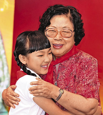 【本報北京新聞中心記者何凡、實習記者陳靈31日電】以《南泥灣》等歌曲蜚聲海內外的84歲著名歌唱家王昆昨日喜收9歲「關門弟子」豆豆(見圖)。她對本報記者透露,將率遠征、成方圓、李玲玉等弟子於8月9日在國家大劇院舉行的「記憶.情深」王昆師生演唱會上演唱紅色經典老歌,新徒豆豆也將與王昆一起合唱紅色經典歌曲《南泥灣》,讓大家感受到南泥灣精神在新一代身上的傳承。