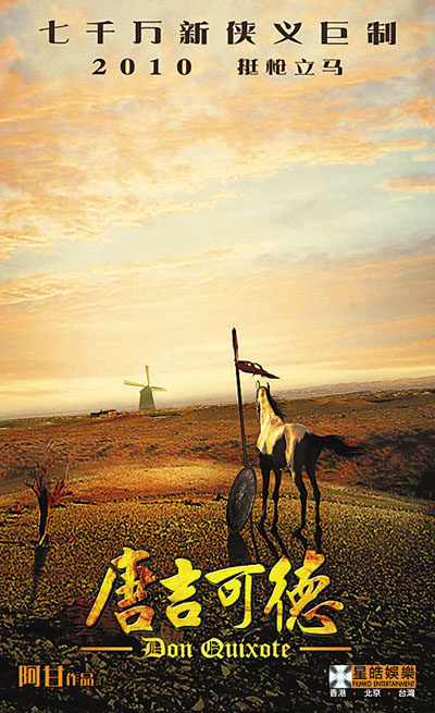 星皓將投資高達7000萬人民幣,與內地導演阿甘合作,重新打造世界名著《唐吉訶德》。電影預計十月開拍,概念海報昨日已率先曝光。據導演透露,他有意將這部擁有400年歷史的世界名著《唐吉訶德》打造成為新俠義傳奇藝術巨獻,早在多年前已一直在構思。主角唐吉柯德名字充滿中國風,講述的是一心想行俠仗義的主角與僕人桑丘、一匹瘦馬闖蕩江湖的傳奇故事。阿甘導演從影15年,22部電影中有12部電影票房超過1000萬,單片票房最高達到3000萬人民幣,電影總票房已經超過2.5億,在國產片總票房榜上位列馮小剛、張藝謀、陳凱歌之後,排名第四。