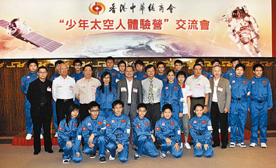 香港中華總商會獨家贊助100萬元支持該計劃。中總昨日亦特別舉行一場交流會,邀請一眾少年太空人出席,分享出發前的感受。會長蔡冠深在會上表示,近年中國航天科技發展取得驕人的成就,全國人民和香港市民都感到驕傲和自豪。他希望各同學把握難得機會,努力學習太空科學和航天科技知識,並透過與航天員的會面交流,學習刻苦鍛鍊和不屈不撓的堅毅精神。