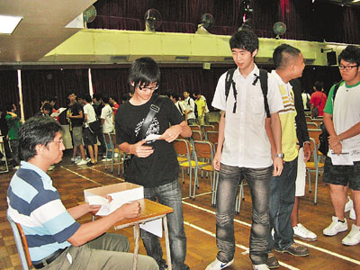 ■聖芳濟書院昨為校內中五生舉行模擬會考放榜。本報記者歐陽杏櫻 攝