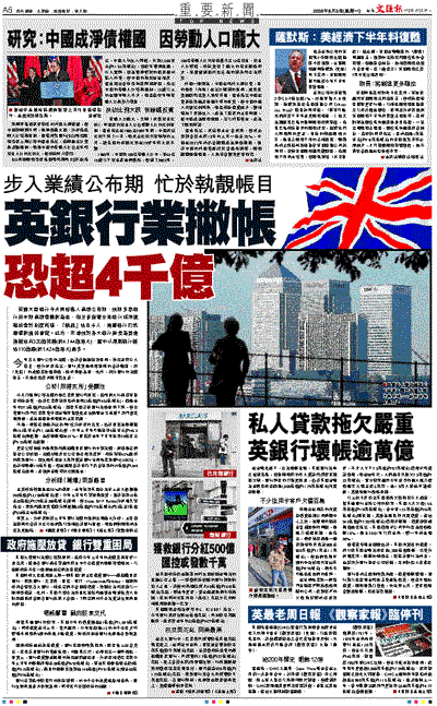 事實上,分析家對於上半年銀行業績的預測出現頗大分歧,主要因為複雜的會計方式令他們難以準確估計銀行盈虧,而他們對經濟前景也意見紛紜。 ■《觀察家報》/《每日郵報》/《獨立報》/彭博通訊社