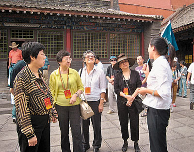 ■蔡素玉、費斐與查史美倫,聆聽導遊介紹五台山。