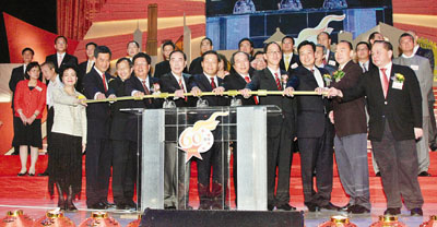 朱蓮芬(左起)、梁振英、曾鈺成、周俊明、楊孫西、彭清華、戴德豐、曾德成、林武、朱樹豪、余國春主持亮燈儀式。