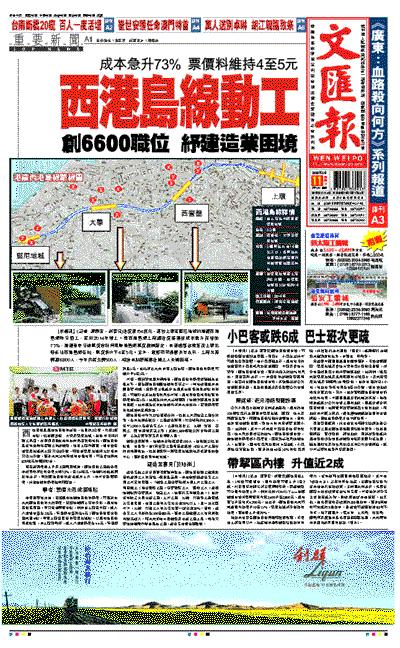 【本報訊】(記者 譚靜雯、郝君兒)造價達154億元、連接上環至堅尼地城的港鐵西港島線昨日動工,將於2014年竣工。惟西港島線工程總造價隨建材成本急升而增加73%,港鐵重申日後票價會沿用現時港島線票價機制釐定,有運輸專家推算從上環出發前往西港島線各站,票價料介乎4至5元。另外,政務司司長唐英年表示,工程共需聘請6,600人,今年內將先聘500人,相信有助紓解建造業工人失業困境。