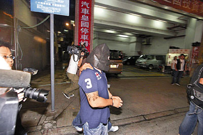 ■疑為賭檔主腦的紋身男子被押走。本報記者鄺福強 攝