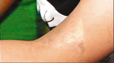 ■印傭左手臂留下熨斗烙印。有線電視畫面
