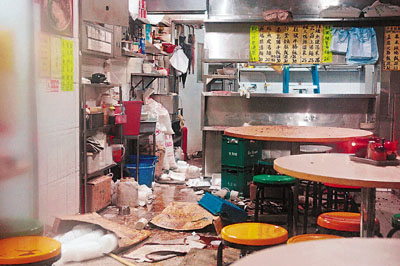 ■發生氣體爆炸的食肆,內裡一片凌亂。