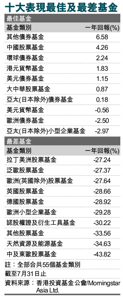 十大表現最佳及最差基金