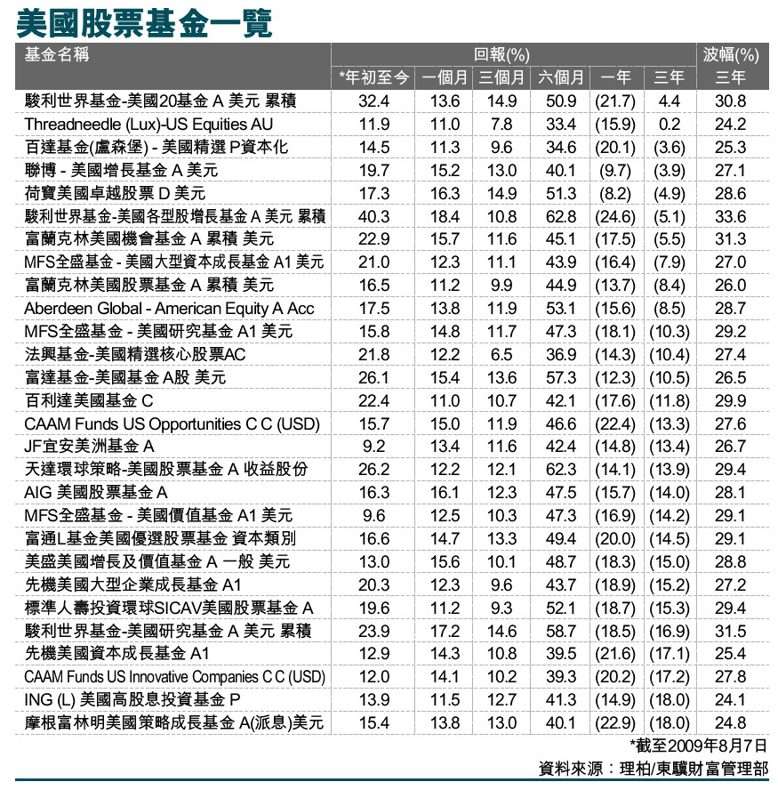 確認經濟轉好美股票基金直接受惠 (2009-08-12)