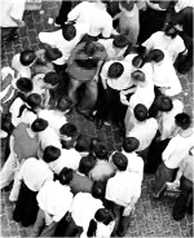 ■廣州一群無業青年聚在街頭賭博。 網上圖片