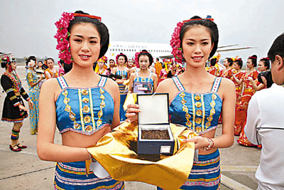 ■西雙版納茶葉種植歷史悠久,品質上乘,是歷代朝貢朝廷的首選。圖為清代朝貢朝廷的普洱茶回歸西雙版納。